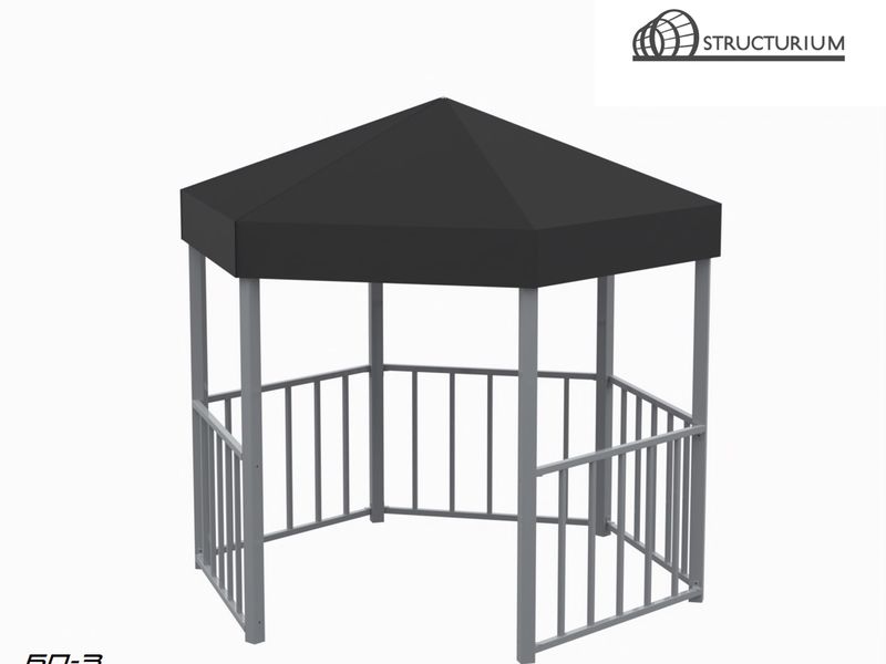 При производстве Беседки используется профильная труба 80*80*3мм, 40*40*2мм, 40*25*2мм и 40*20*2мм. Покраска полимерная порошковая с предварительным нанесением цинкосодержащего грунта, цвет серый. Покрытие крыши - акриловая ткань или ПВХ.