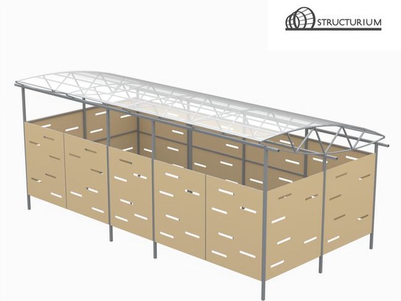 При производстве Контейнерной площадки используется профильная труба 80*80*3мм, 60*60*3мм, 60*30*2мм, 30*30*2мм и 34*3мм. Покрытие крыши – профлист. Обшивка периметра крыши – фасадные панели. Покраска полимерная порошковая с предварительным нанесением цинкосодержащего грунта, цвет черный и бежевый.