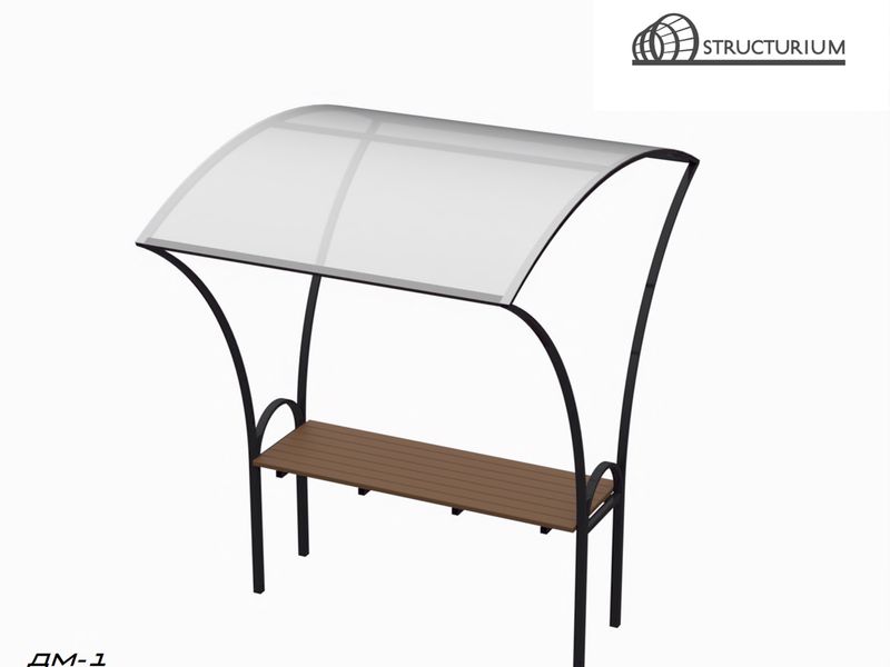 При производстве Скамейки с навесом используется профильная труба 40*40*2мм, 50*25*2мм. Материал сидения скамейки – доска 90*30мм обработанная атмосферостойким покрытием. Покрытие крыши – прозрачный сотовый поликарбонат 8мм. Покраска полимерная порошковая с предварительным нанесением цинкосодержащего грунта, цвет черный.
